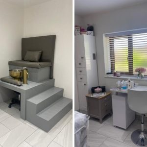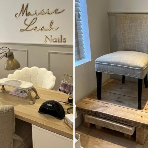 Starting out doing nails in her parents’ living room before moving into her dads summer house, Maisie Leah Poultney expanded for a third time to achieve the salon set-up of her dreams. “My boyfriend and I brought a house with a separate garage, so my dad and boyfriend teamed up to convert it into my…
