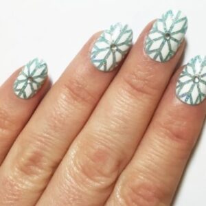 A snowflake nail polish design to get you in the spirit of the festive season, by Sophie Harris-Greenslade, aka The Illustrated Nail. This design uses striping tape, so you don’t need a steady hand or to be an expert in the nail art game to create it. You will need: OPI Nail Lacquer in Alpine…