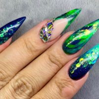 We want to see what you’re wearing on your nails! Amanda Byrne, of Divine Nails By Amanda Byrne, wears a stunning emerald, Northern Lights-inspired design. “I wanted to create a design that was a little different to the last couple of sets I had done on myself. I originally wanted to do a spring theme…