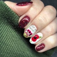 We want to see what you’re wearing on your nails! Lauren Holmes, of Nailed It Beauty, painted poppies on her nails in honour of Remembrance Day. “These nails were created using Gelish colours Sheek White for my middle and ring finger and Angling For A Kiss on my other fingers, with a layer of Magpie…