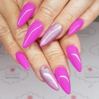 We want to see the designs trending at your nail desk! Sara Wilfred, of Sara’s Nail & Lash Boutique, reveals that the simple but glamorous combination of bright pink hues and holographic feature nails have been popular with her clients recently. “This design shouts summer – and we don’t have long left before the winter…