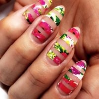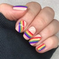 We want to see what you’re wearing on your nails! Lauren Holmes, of Nailed It Beauty, wears rainbow-inspired nails for a cute and funky look. “To create these nails I used Gelish Cover Pink Structure Gel as my base colour over a layer of nude, so it wasn’t sheer. Then, with the six different colours…