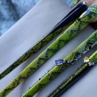 We want to see what you’re wearing on your nails! Talented tech, Kayley Cairns, wears extreme nails seeing a patterned green design adorned with Swarovski Crystals. “I sculpted these nails using HD Pro Nails Acrylic on extra long forms from Krista Paulitti. I then decorated with an airbrushed design and gel paints, finishing with Swarovski…