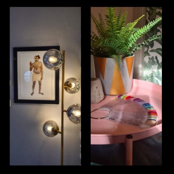 “Oh god, I spent so long trawling the internet in search of the perfect furniture and light fittings! I had really specific ideas in mind, but then had to find somewhere that actually had them and within my budget. I originally saw our palm leaf light fitting for some ridiculous price online, but with a bit of research, I found the manufacturer selling it direct from China on eBay at a significant saving! I actually made some of the feature pieces, including the pom-pom door curtain, plant walls and a three-tier ombré tassel lampshade, and I upcycled a couple of pieces of furniture, including turning an old china cabinet into my red & leopard print retail cabinet, complete with LED lighting. The pink leopard head planter was originally a beige resin one from Dunelm, which I spray painted hot pink! The overall result is a high-end eclectic look, achieved at a price I could afford (albeit with some hard work). My design degree definitely came in handy!”