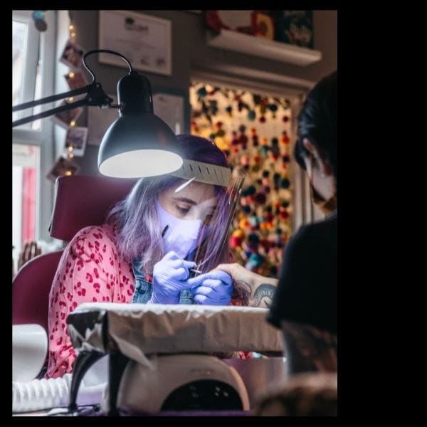 A former graphic designer and illustrator, Lucy Allen based in the Kelham Island district of Sheffield, has moved her creative focus onto nails as the owner of Supernatural Nails, having trained as a nail tech three years ago. Opening her nail salon to address concerns she was having on issues of safety, ethics, sustainability and cruelty, Lucy notes, “I provide a highly professional service in a unique private studio space, tucked away in the Kelham Island area of Sheffield . I specialise in all types of gel nails, which are virtually odourless – there’s no acrylic used in my studio. The salon is run as ethically and sustainably as possible, whilst maintaining the highest standards of hygiene. We operate on an appointment-only basis to ensure that you’re given our prescriptive, one-on-one care in a relaxed, non-judgemental and friendly environment, resulting in some scheduled ‘you time’ and the nails you’ve always dreamed of. My aim is transform nails beyond expectations, to make the client feel amazing and to leave every appointment feeling relaxed and rejuvenated.”