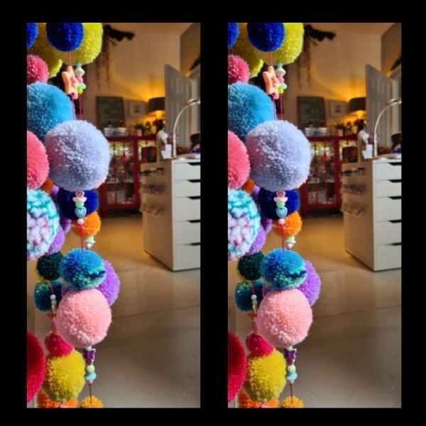 “There are 2 rooms, but the studio is open plan. Clients enter straight into our pedi area and then come through the pom-pom curtain into the large main room, where all three of us have our nail desks.”