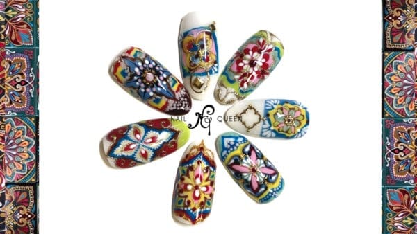 Cat has taken the styling of pottery, tiles and fabrics to create a series of Bohemian nail styles that are arresting to behold.