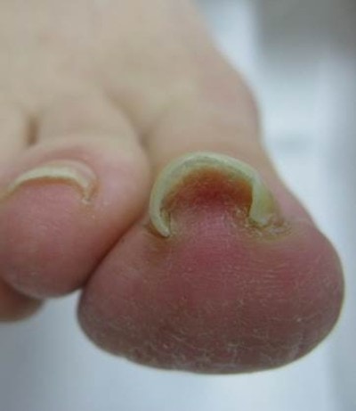 “Usually the ingrown nail is painful. It can be red, swollen, and warm to the touch.”