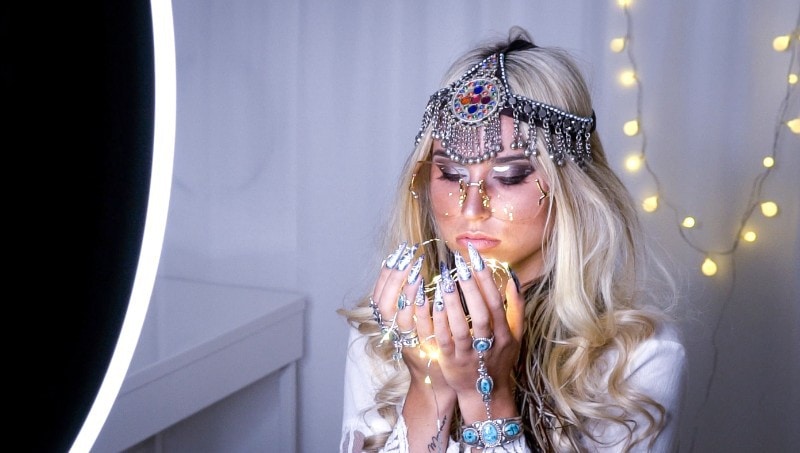“I’m a very spiritual person and revel in talking about energies, crystals and tarot,” Celina reveals. “I feel most comfortable when I can combine my bohemian style with mandalas, tattoos, the universe and astrology, all of which are reflected in the nail design.”