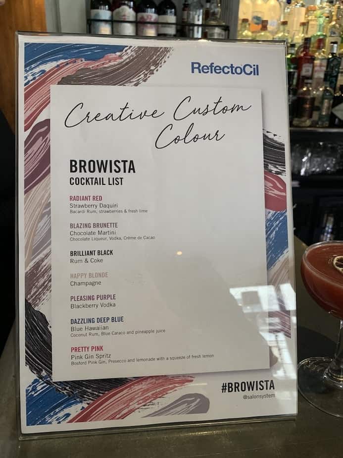Hosted in the upstairs space of the swanky venue, I arrived at the launch party to see an extensive drinks menu designed to reflect the custom colour opportunities achievable with the RefectoCil Browista workshops. Guests were invited to order whatever tickled their fancy, from the Blazing Brunette chocolate martini, to the Dazzling Deep Blue blue Hawaiian cocktail.