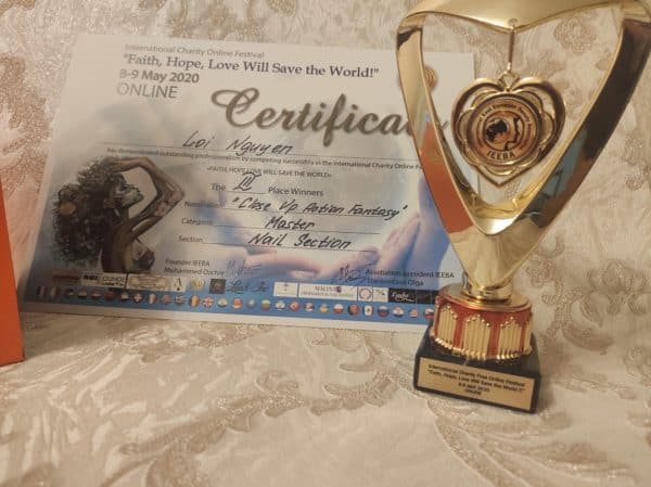 Then Loi entered the International Charity Festival 8-9 May 2020. He placed third in Nails Fantasy (master) category.