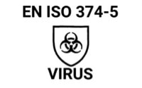 This standard confirms if a glove is suitable for use with biological agents. The two parts of the standard are represented by two symbols below. The criteria to meet these standards is high.
