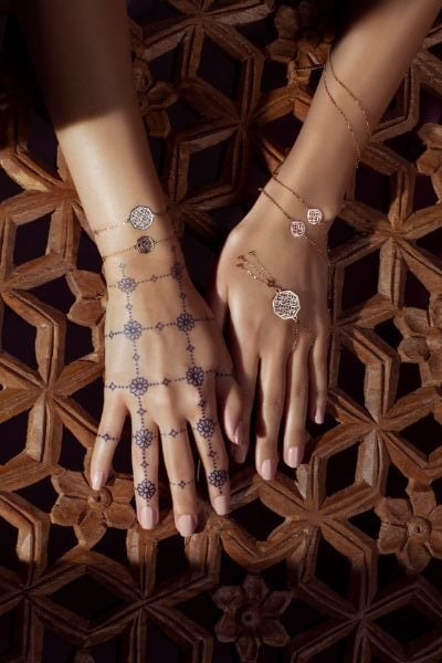 She has since opened pop up henna bars in Selfridges, Harvey Nichols and Topshop and is renowned for her unique collaborations, including the feature windows at Harrods and Force India Formula One cars, as well as with celebrities from Rudimental to Ellie Goulding, Perrie Edwards and Alesha Dixon. She has created bespoke designs for the runway shows of Antonio Berardi and Manish Aurora.