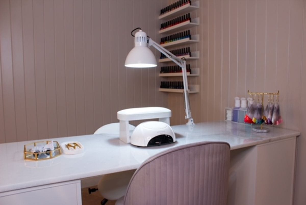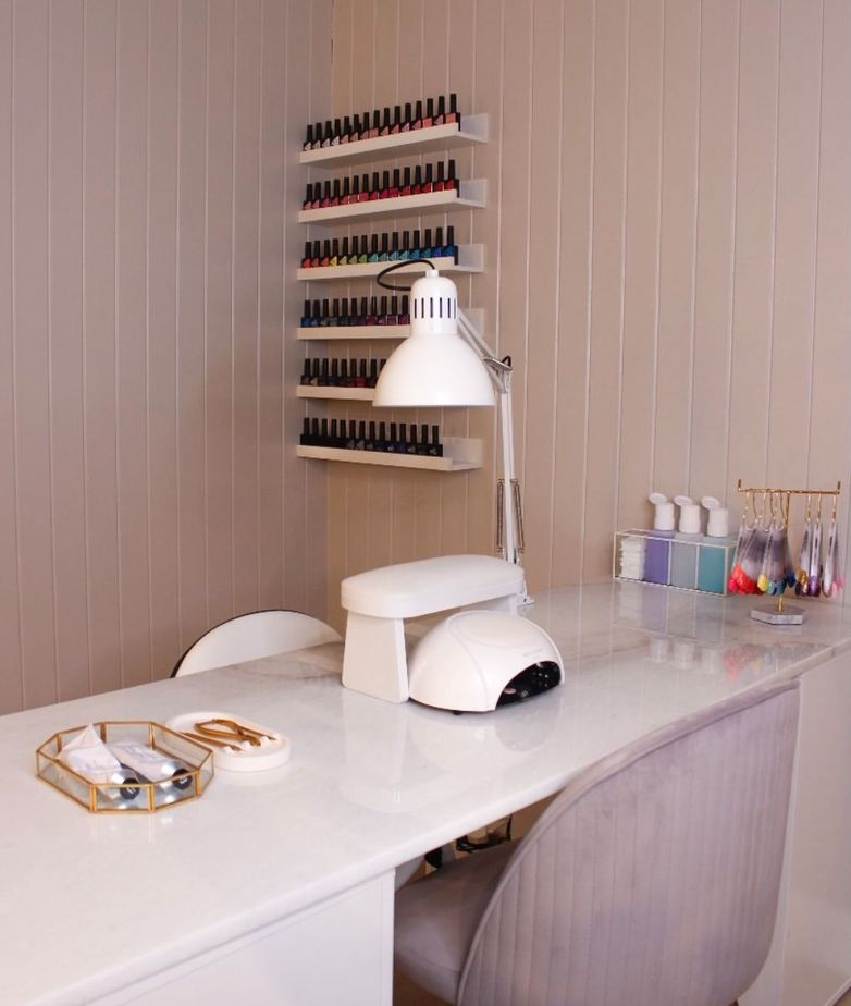 As well as exuding comfort, the studio sees a stylish modern French theme. “It coincides with my most popular nail design: the French manicure,” Faye laughs.