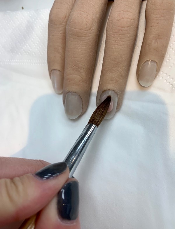 TIP – The flat tip of the brush is used to pick up the acrylic bead. The tip is used at the cuticle zone and blending the acrylic beads.