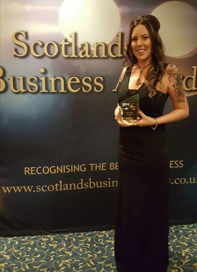 I trained in acrylic at first and, from that, I decided to leave college. I then trained to the highest level I could, course after course, and I am now a CND Grand Master. I started working for myself after the first year of training, by my second year I had opened my first salon and by my third year I won my first award, which was for my dedication to education. I have also worked backstage and London and Paris Fashion Weeks, gone on to win another two awards as the Best Nail Salon in Angus and placed second in the whole of Scotland, and appeared in nail magazines both in the UK and America.