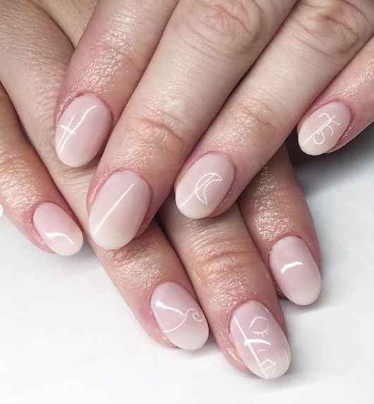 A nude overlay and delicate white line detailing effortlessly combine in this subtle yet chic nail look by Nidia of @nailbrew.