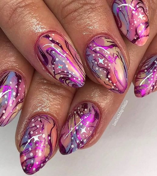 Here to brighten up your social feed is this playful nail design created by talented tech, Isabel May. Seeing an array of bold, beautiful and vibrate hues with hints of sparkle, these nails are sure to catch eyes – for all the right reasons.