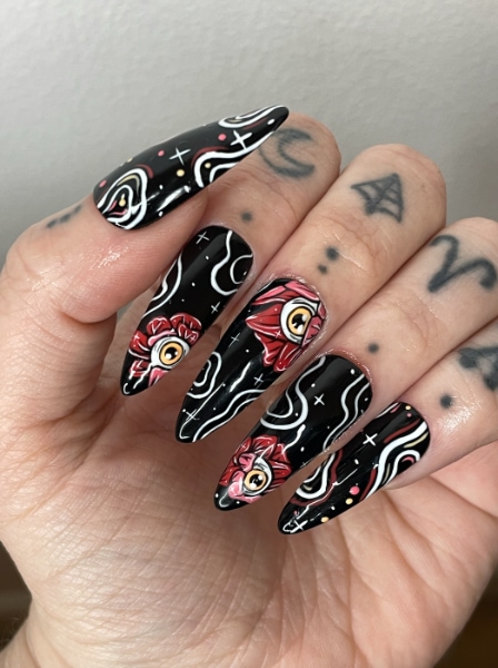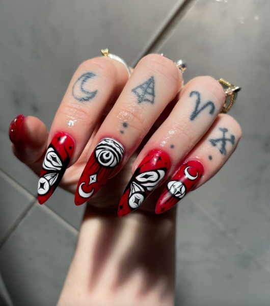 Laura Prigg has spent her working life in the retail industry, progressing from Christmas temp to store manager at Yankee Candle. She began creating custom press-on nails at the end of 2019 under the brand name Basic Witch Nailz.