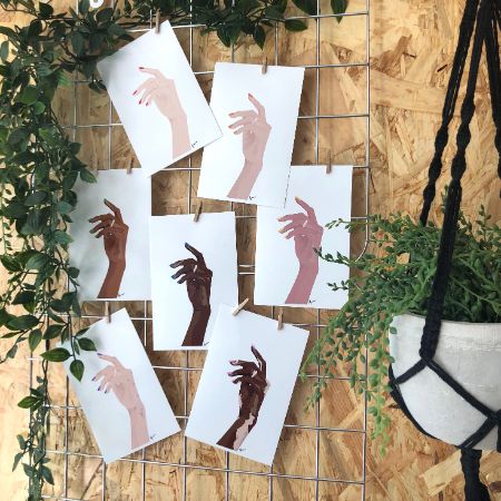 The ‘Equality in Beauty’ collection is a series of seven prints of hands, each with a different skin tone and nail shade. Each illustration has been digitally hand-drawn by Rosemarie using her laptop track pad, and the prints are available to purchase in packs of 1, 3, 5 or 7. All profits are being split between Women’s Equality Party & NHS Charities.