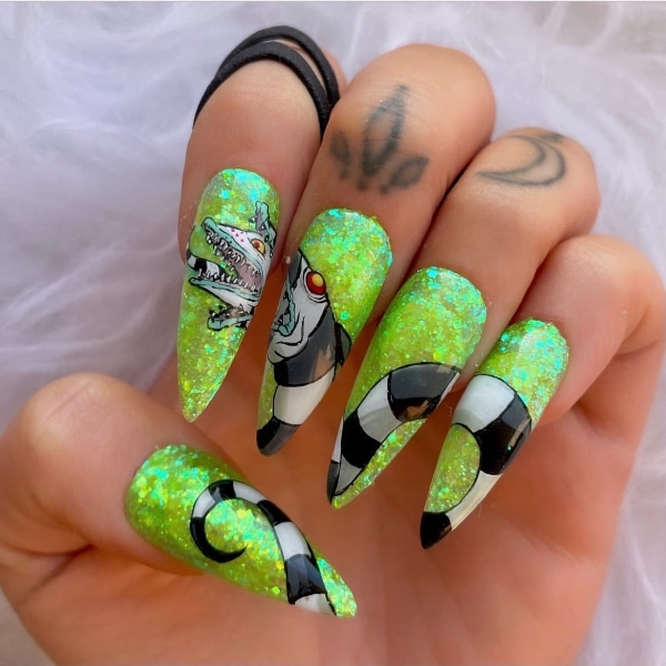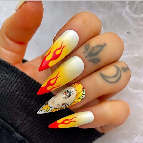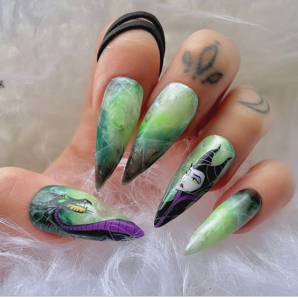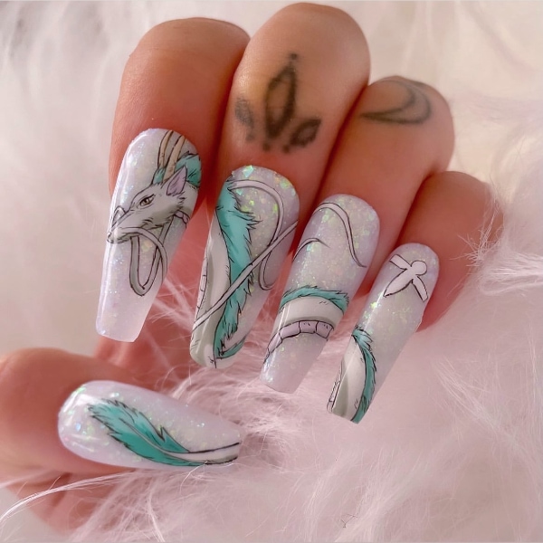 “I love creating character nail art. Some of my most popular and recognisable designs are anime related,” Angela reveals. “However, I do love to create any style as my mood can vary so much, from cute and kawaii, to dark and gothic.