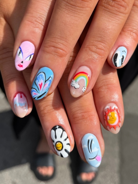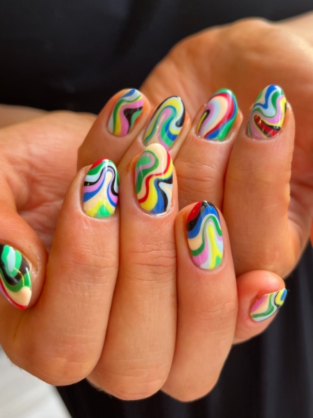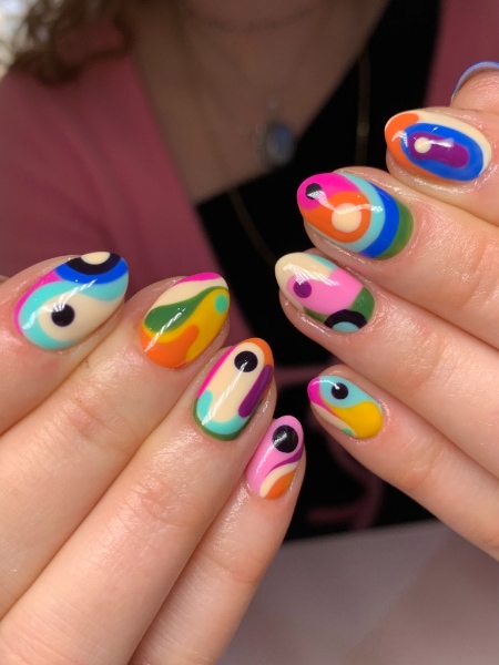“My signature style would definitely be anything super colourful and abstract,” Daisy enthuses. “I love most styles of nail art, but find abstract vibrant sets to be most enjoyable to paint.