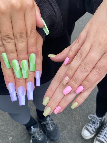 “My ‘typical client’ usually always gets nail art. I hand paint all of my work, so it’s the best time when they come in asking for a sick new design that they may have seen somewhere online. Arty sets are what really get me through the day, so these are my favourite type of client.”