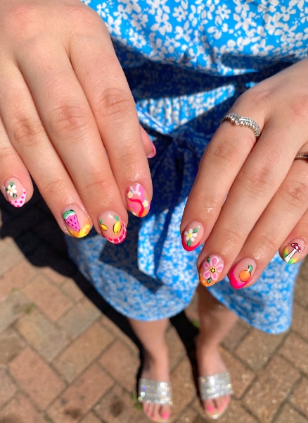 Joss specialises in hand-painted nail art, utilising her creative talents and artistic ability for her designs, which range from detailed character art to trending styles including neon mix and match designs, bright and bold French tips, and eye-catching 3D creations.
