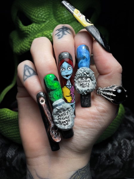 Alana sources most of her nail inspiration from watching movies and tv shows. “I get ideas in my head and just have to wing it by putting it onto a nail and hoping for the best.