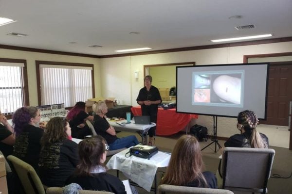 “Saturday was filled with demo classes and a 3-hour workshop of their choice. In the evening educators joined together to create a round table discussion where attendees asked questions about anything. On Sunday, campers faced their fears and competed in a one-hand competition. This gets them a score sheet and critique to help improve their skillset and styling. Competitions in the USA are pretty much non-existent, so having these critiques is incredibly valuable,” highlights Jessica. “More classes continued into the afternoon, then in the evening, everyone dressed up in themed clothing from the Prohibition era to attend the Trade Show Costume Party. Incredibly, with over 50 flapper dresses on display, not a single one was repeated! While music blasted, techs browsed the booths and networked with each other up until midnight when the last finally headed to bed. On Monday, as expected, there were some tired campers that still had one last class to take. This is typically when we hold the longer workshops that require a whole day such as Allie Baker’s popular Trolls class.