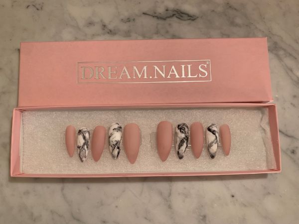 Press on nails, also known as glue on nails, were super popular in the late 90’s/early 00’s. They are artificial, acrylic nails that are already made up; the client simply has to glue them onto the top of their natural nail.