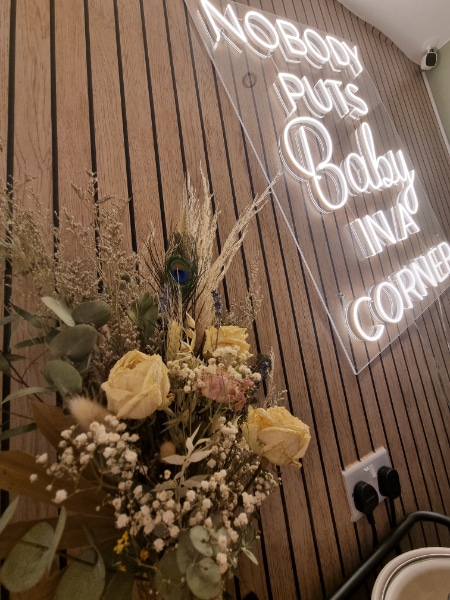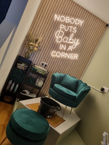 “Another thing I personally love is my neon sign and movie quote walls. The neon sign is a quote from Dirty Dancing that says ‘nobody puts baby in a corner’, which is situated in the pedicure corner, and in the micropigmentation/aesthetics room I have a quote from Grease which says ‘beauty school drop out’ just above all my certificates. Classic movies for a classy salon!