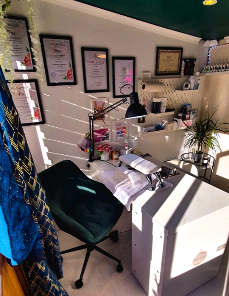 Aggie Saruna qualified as a nail technician in 2013, working on a mobile basis and in various salons during the first two years of her career, before setting up a space in her living room in 2015 to work from.