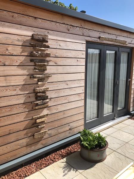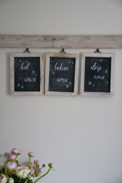 “The signage is made out of drift wood collected over time from beach walks, and is hand painted,” Helen explains. “A local artist has painted the flower logo onto the walls of the salon.”