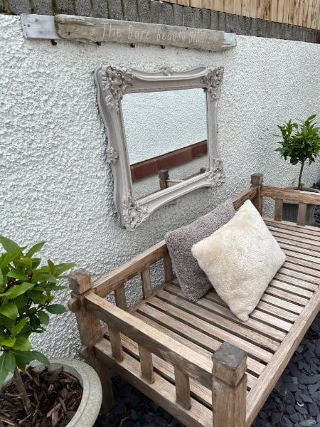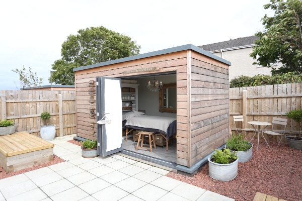 “I relocated to a beautiful seaside town in North Berwick to set up my beauty salon in my garden,” she recalls. “My garden salon is set in a lovely courtyard with topiary bay, olive, holly and scented herbs displayed in French vintage containers.