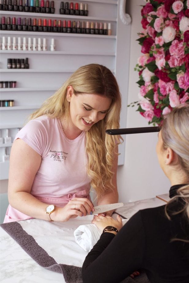 With a team of three, plus the salon’s mascot, British bulldog Delilah, the salon offers a varied treatment menu. “We specialise in all things nails but we offer many other treatments such as spray tans, microblading, lash lifts, eyelash extensions, waxing, tinting, makeup and many more,” Penny explains. “We use a variety of products, but for nails our favourite brands are The Gel Bottle Inc and OPI.”