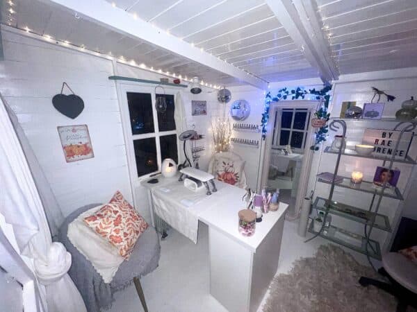 The salon is a wooden cabin in the back of Rae’s garden, a space which her mother used to use for sewing. It took one month to remodel.
