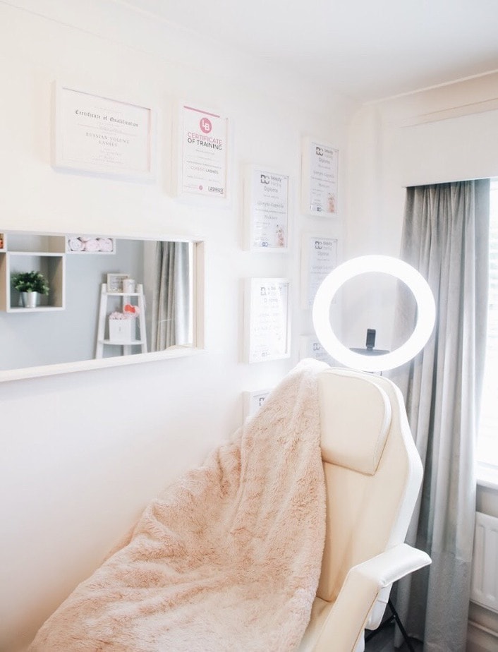With this in mind Giorgia has tried to make the salon feel as comfortable as possible. “I wanted to go for a clean, sleek look in the salon that was also very welcoming! I absolutely love flamingos so I incorporated my love for them in my decor with my flamingo chair and light. I also have various greenery in the salon so I guess I have gone for a tropical kind of vibe!