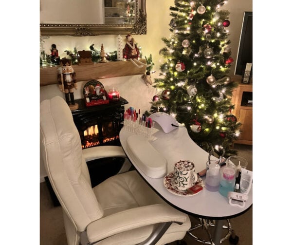 “I offer hot drinks, including decaff and camomile tea,” Chantelle continues. ” I play music and when I get to know my clients, I put on music that I know they’ll enjoy. I want my clients to know that their time with me is for them to relax, be looked after and be listened to. I did a year of training as a counsellor in 2019, and having good listening skills is part of being a great nail tech!”