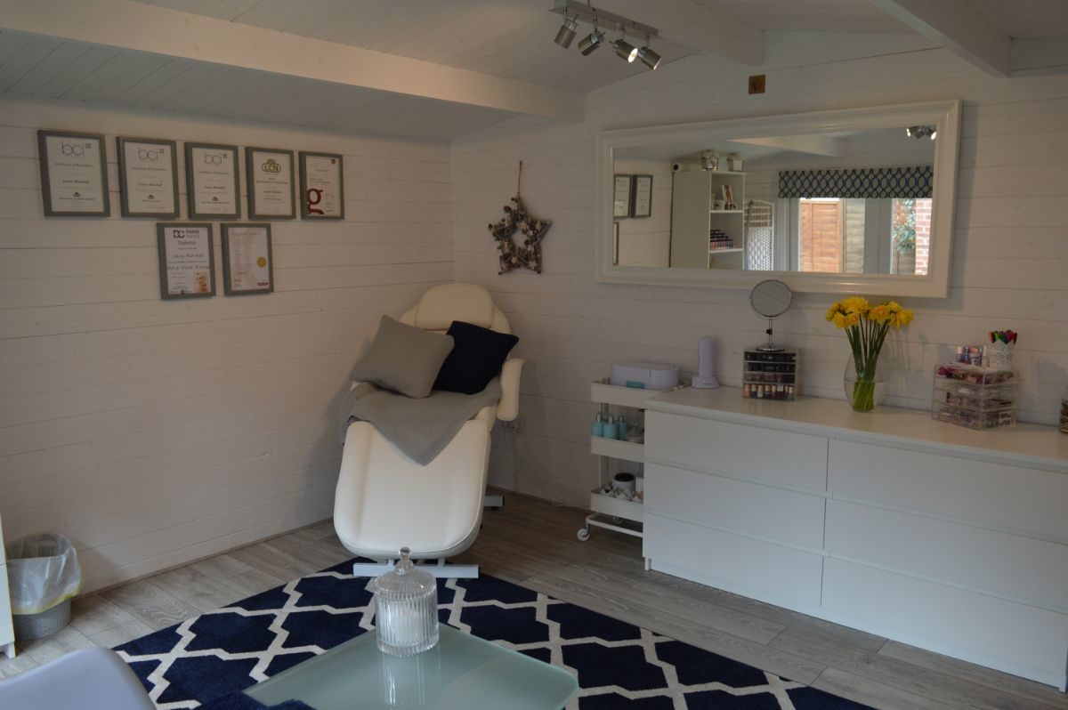 “I was originally specialised solely in nail and I was using my conservatory as my workspace,” Lacey explains. “When the time came to expand the business, I needed somewhere private, that was separate from my family and house, where customers could come to have their treatments without having to enter my home. Plus, there wouldn’t have been enough room in my conservatory for my waxing, spray tanning equipment and lash equipment!