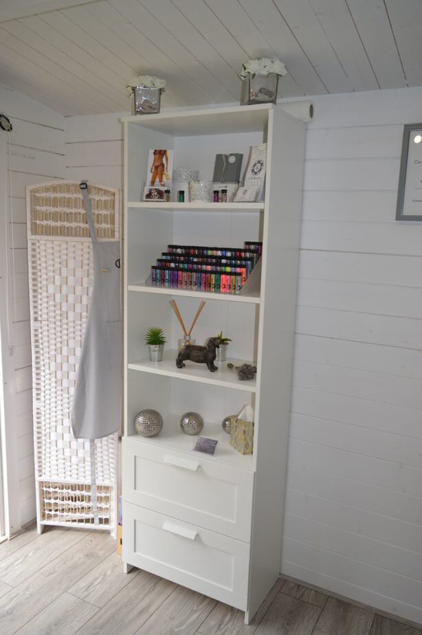 “The cabin has a view of my lovely new garden that was landscaped by me, my brother and husband. It also had to be cosy and comfortable so clients felt at home whilst having treatments. I take great pride in having a clean and tidy home and workspace.