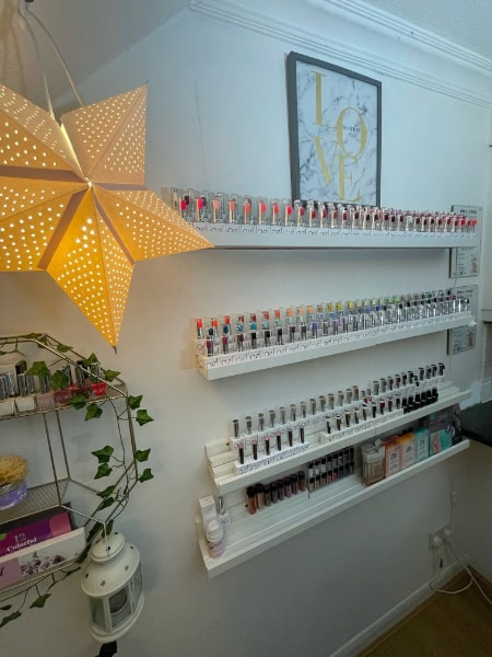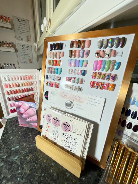 “All my shades are on show and I have a nail art board for clients to look at whilst I am working on their nails. This also really helps strike up some good conversations.”