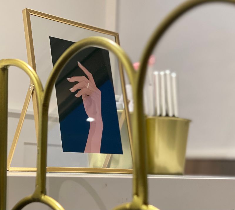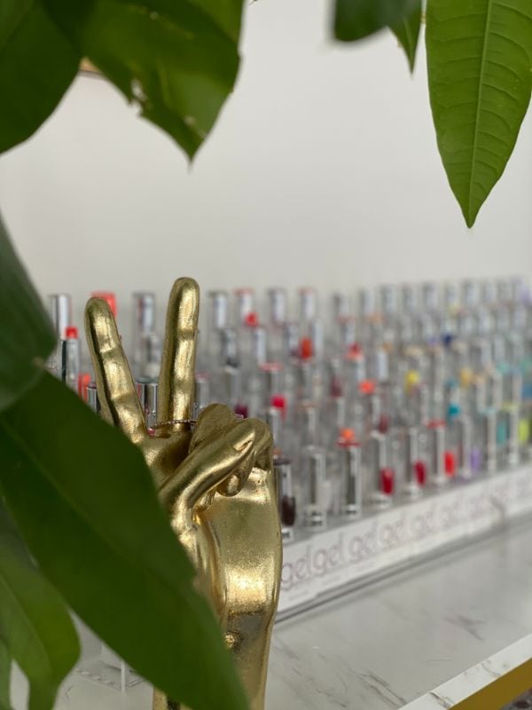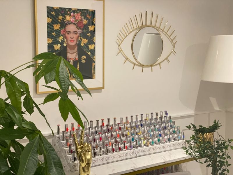 Welcoming and fresh, the salon’s décor draws inspiration from a number of sources. “I decided to go for a minimal look, while also bringing in some art deco touches with golds and greens,” Kelly adds.