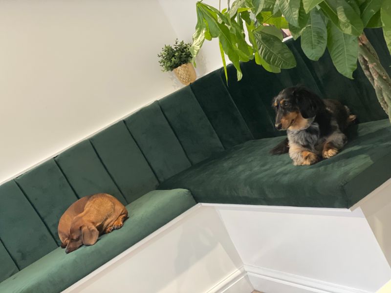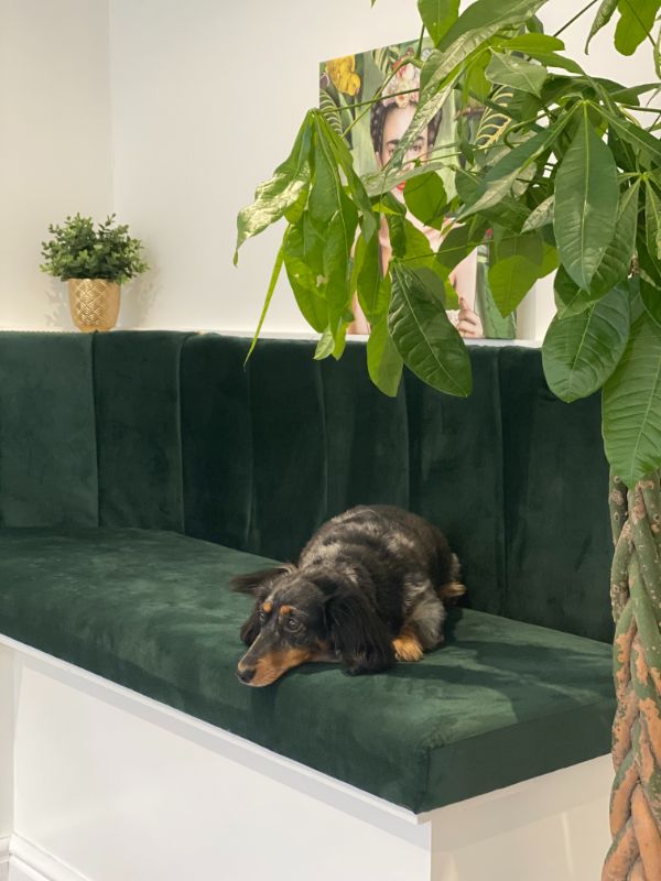 In the first lockdown last year, Kelly’s husband built her a new salon in the garden. “It’s perfect,” she beams. “I knew when I saw the space that I wanted a corner sofa. My husband built one in and now my clients have somewhere to relax.