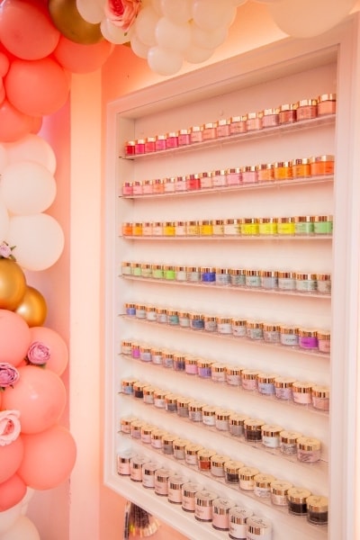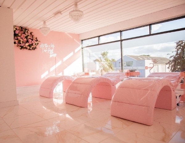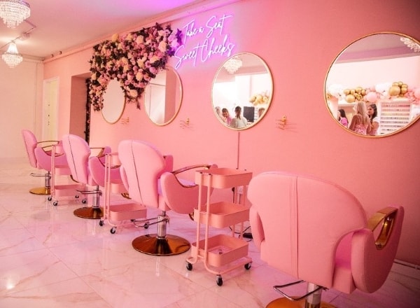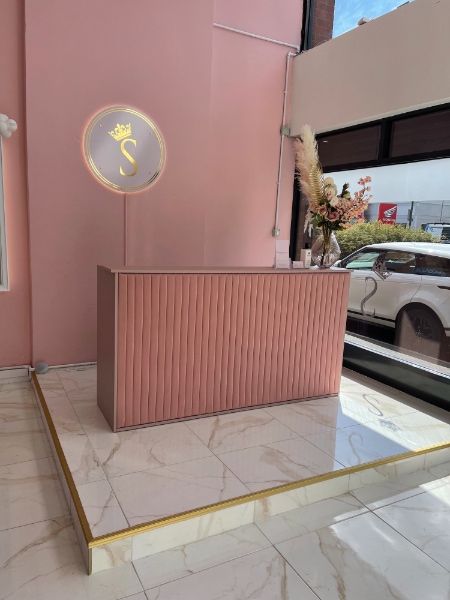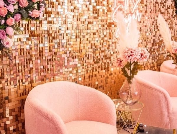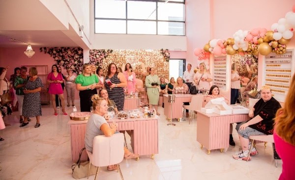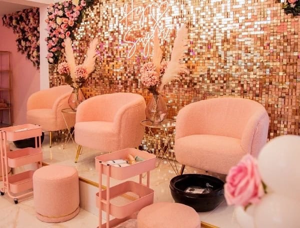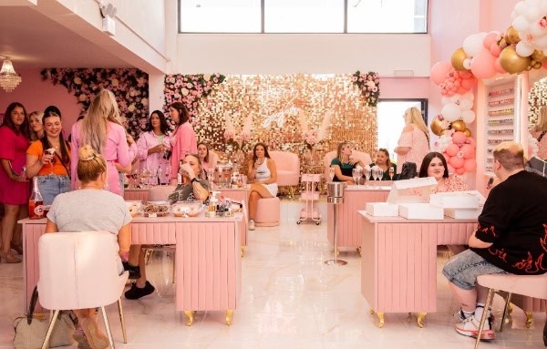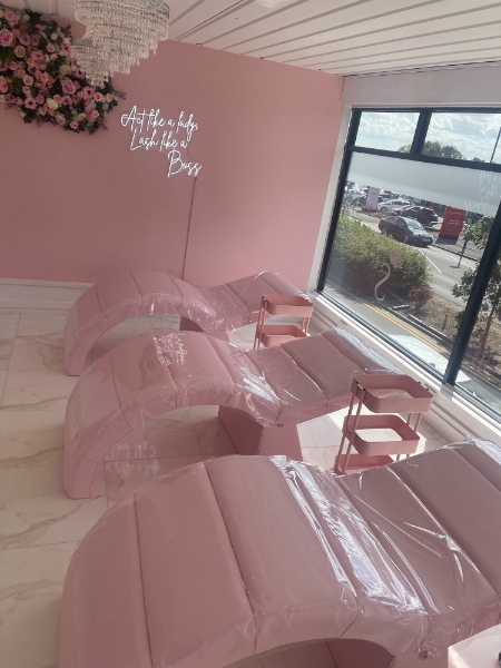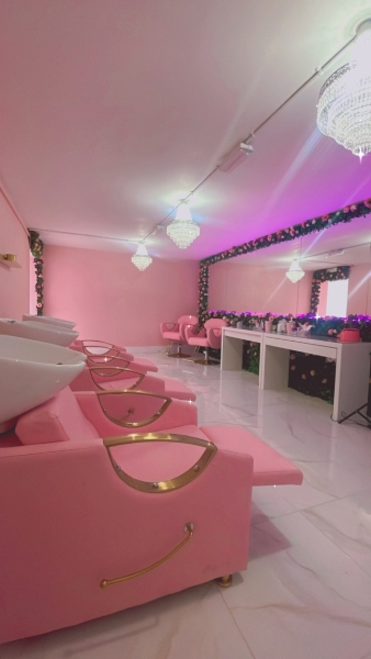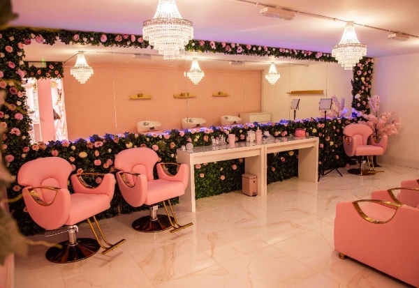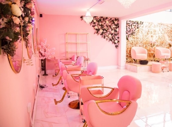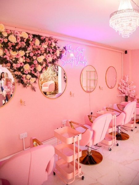 “The salon took around four months to renovate, and we opened our doors in August 2022. The salon is head-to-toe in pink décor, with matching nail desks and a bespoke 6 foot reception desk from Glitterbels,” she reveals. “We have had sequin walls designed, and all of the marble walls were hand painted by myself.
