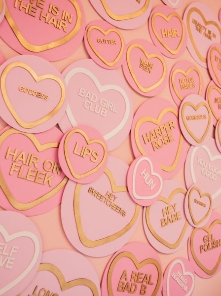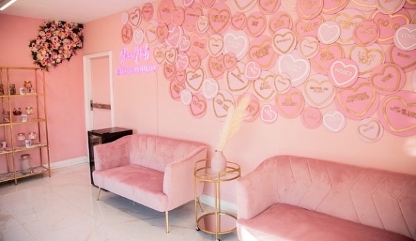 “As you walk in, we have a large waiting area with love heart signs and wording in relation to the salon.”