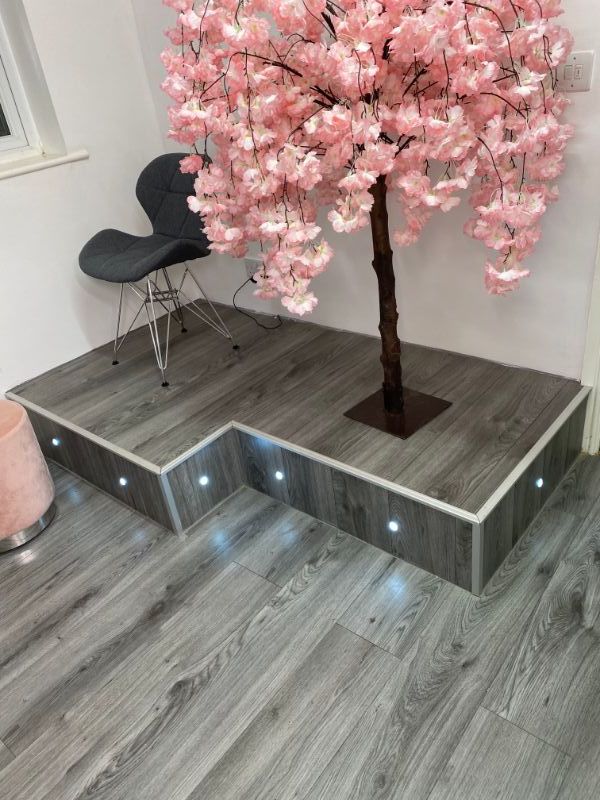 “My favourite part of the salon is definitely the cherry blossom tree waiting area. I took the idea to my Dad and straight away he set to work and created the bespoke bench. He’s used to my crazy ideas and will always find a way to make them happen!