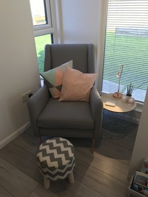 “I wanted the decor in the nail shack to be really fresh and light. Previously, the room I had been in before was quite dark and didn’t have much daylight coming in. I found myself drawn to a Scandinavian and geometric theme as it’s bold, clean and fresh but at the same time cosy. I chose a calming colour palette of soft greys and pinks, all accessorised with copper finishes.
