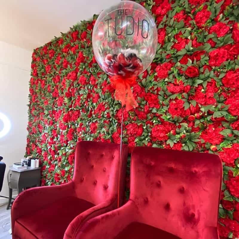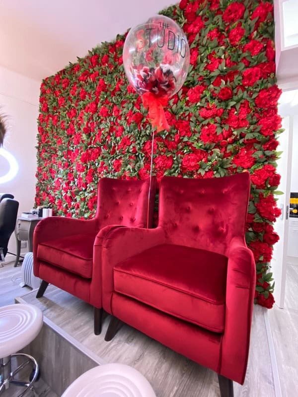 “When the flower wall arrived I was so worried! It was so different from all the pretty pink salons that surround mine, but once it was up I was in love and there was no stopping our red rose theme. I found a local florist to make us the most beautiful door arch for the main branch and a rose trail under the sign in the Bridge of Don branch. Now everyone comments on our very different but beautiful colour choice.”