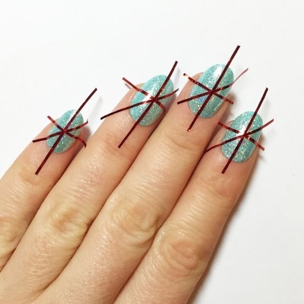 This design uses striping tape, so you don’t need a steady hand or to be an expert in the nail art game to create it.